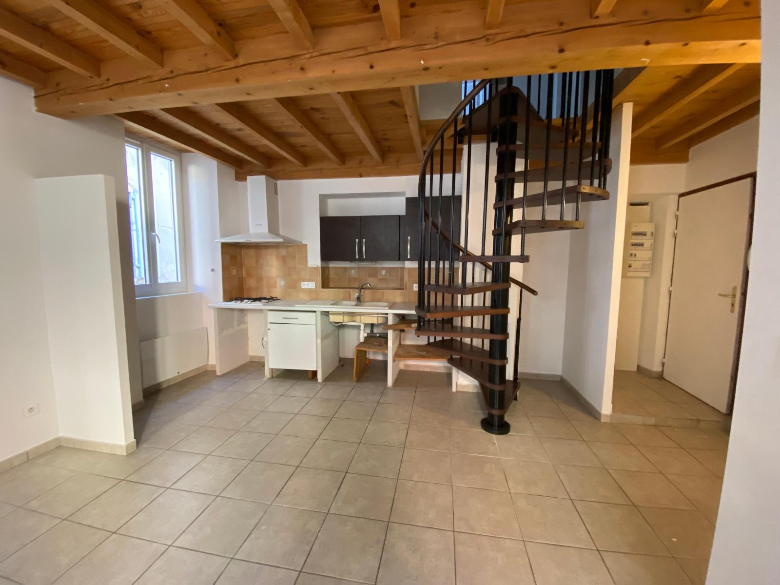 Il se compose, sur le 1er niveau, d'une pièce de vie de 22m2 avec cuisine semi aménagée ainsi que d'une petite salle d'eau avec wc