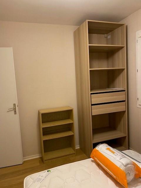 Entrée avec placards, séjour, cuisine équipée, une chambre, une salle de bains, wc séparés.