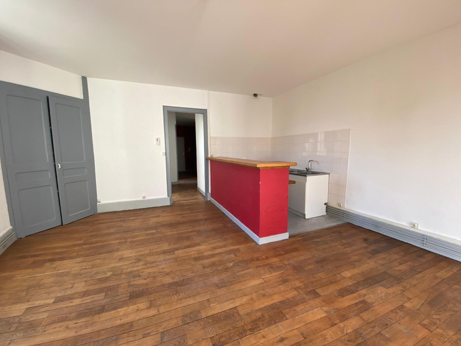 Il se compose d'une entrée avec placard, une cuisine ouverte sur un salon, 1 chambre, 1 bureau, une salle de bains, WC indépendant, chauffage individuel gaz.