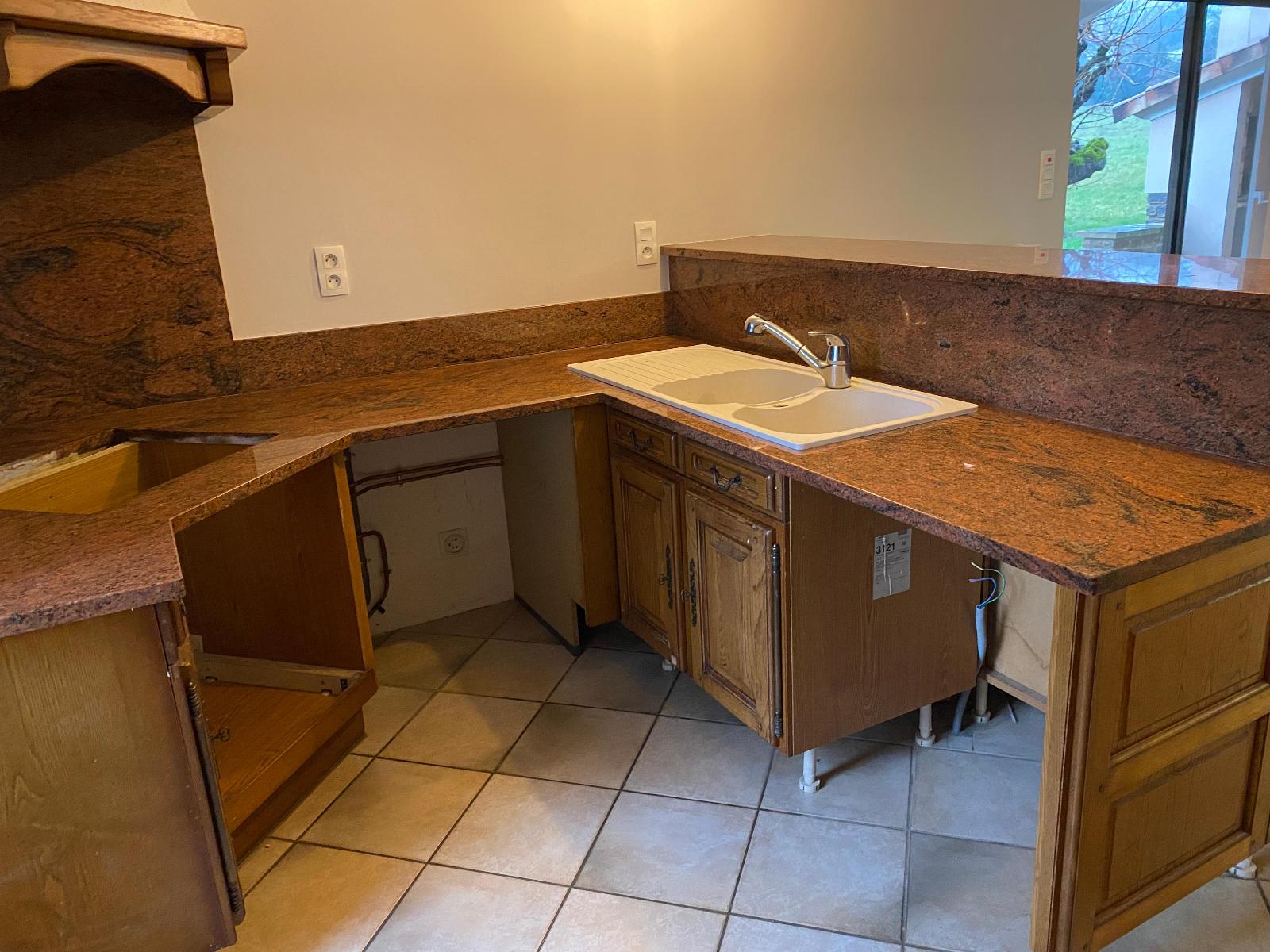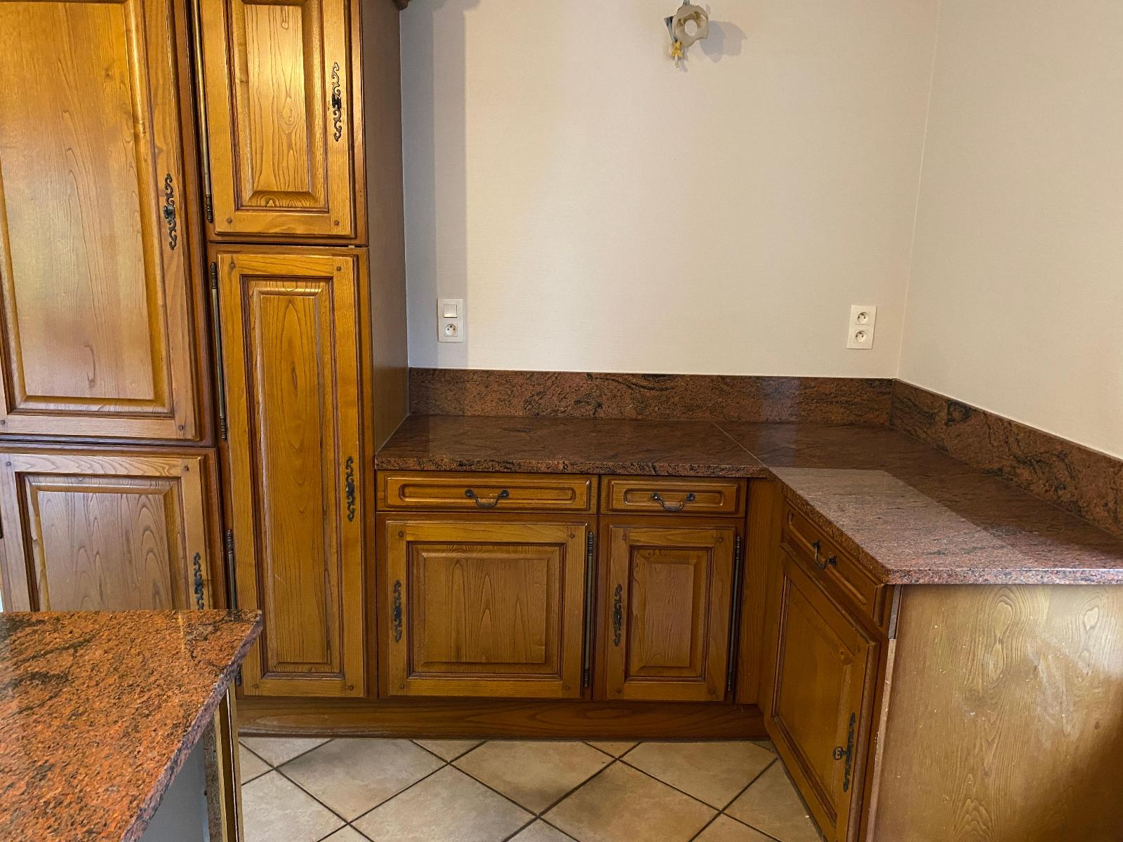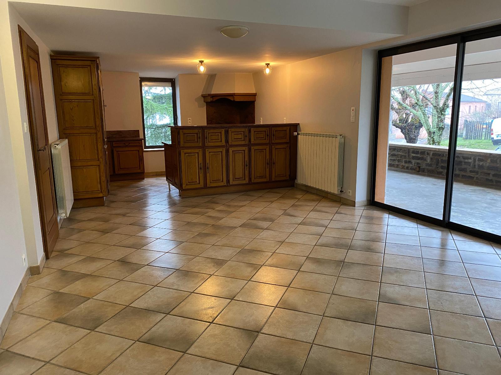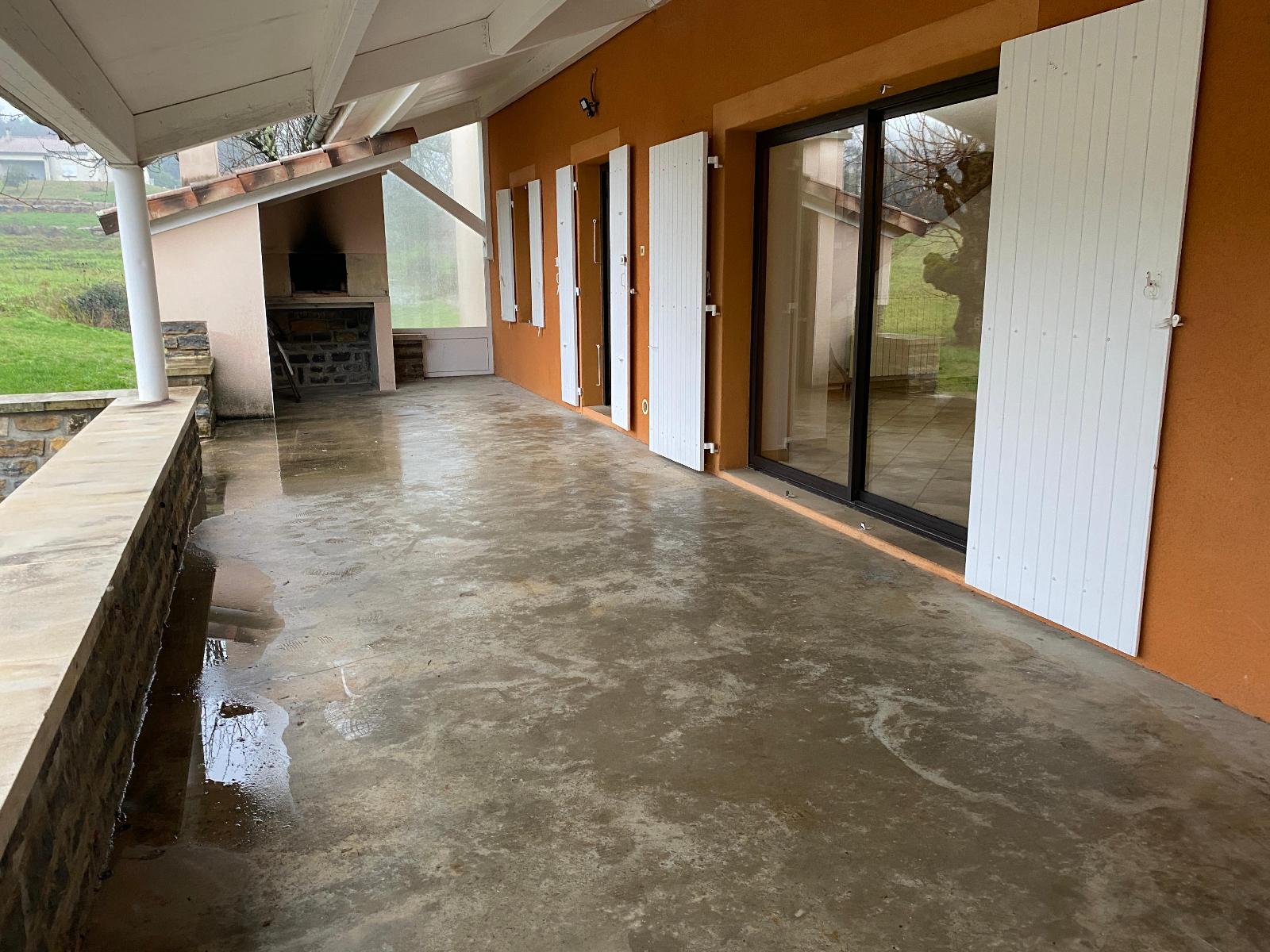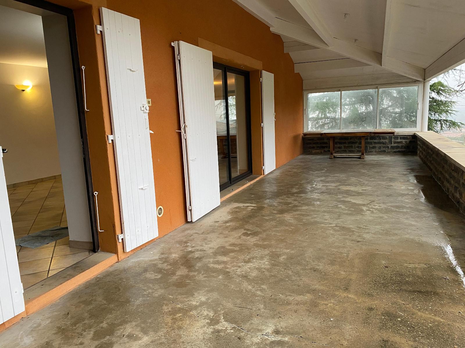 Ce logement se compose au rez de chaussée d'une cuisine aménagée ouverte sur un séjour donnant sur une grande terrasse couverte avec four à pizza, 1 chambre parentale avec salle de bains et toilettes.