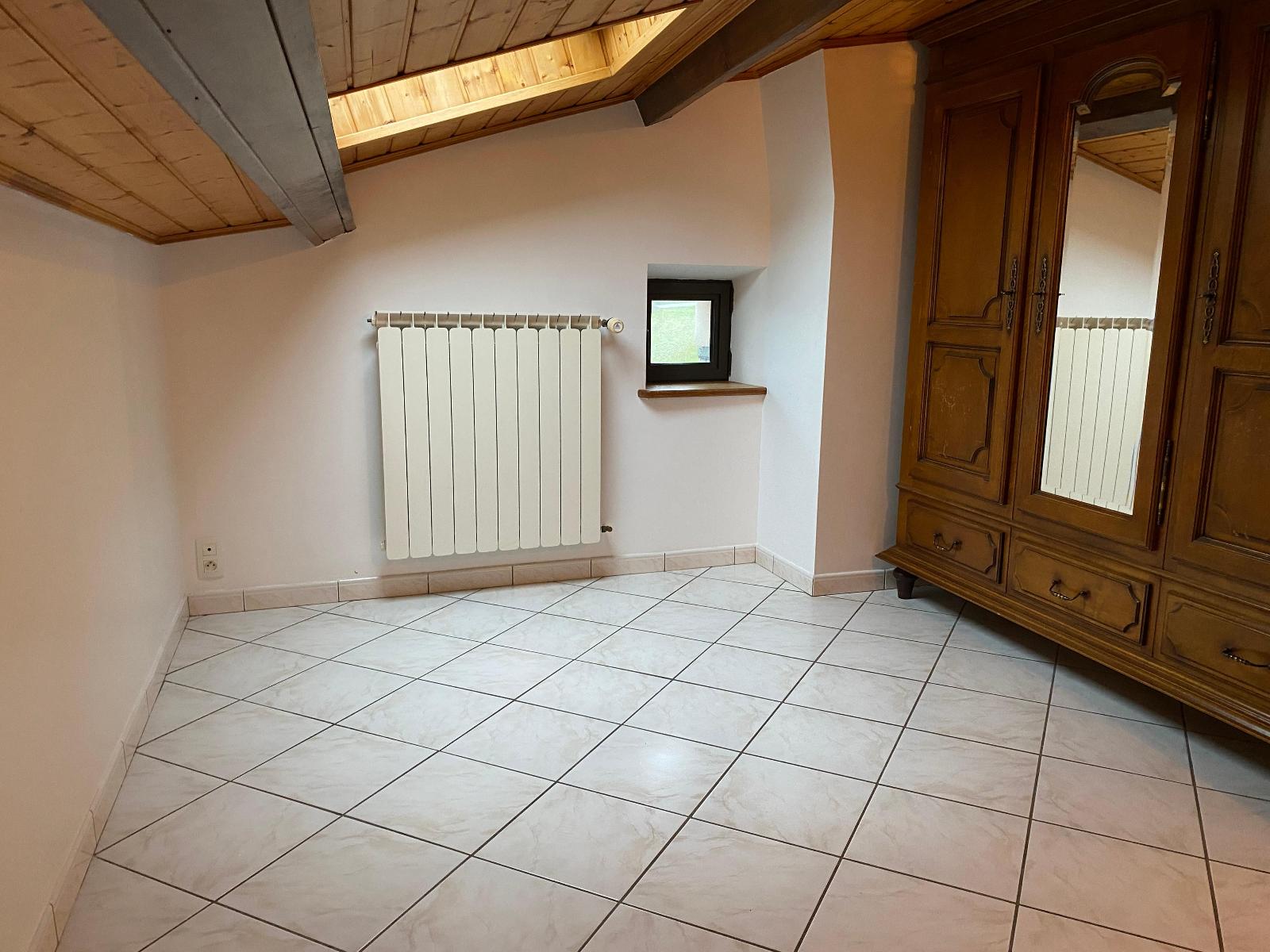 A l'étage, vous trouverez 2 chambres mansardées et un bureau une salle d'eau avec toilettes séparés.