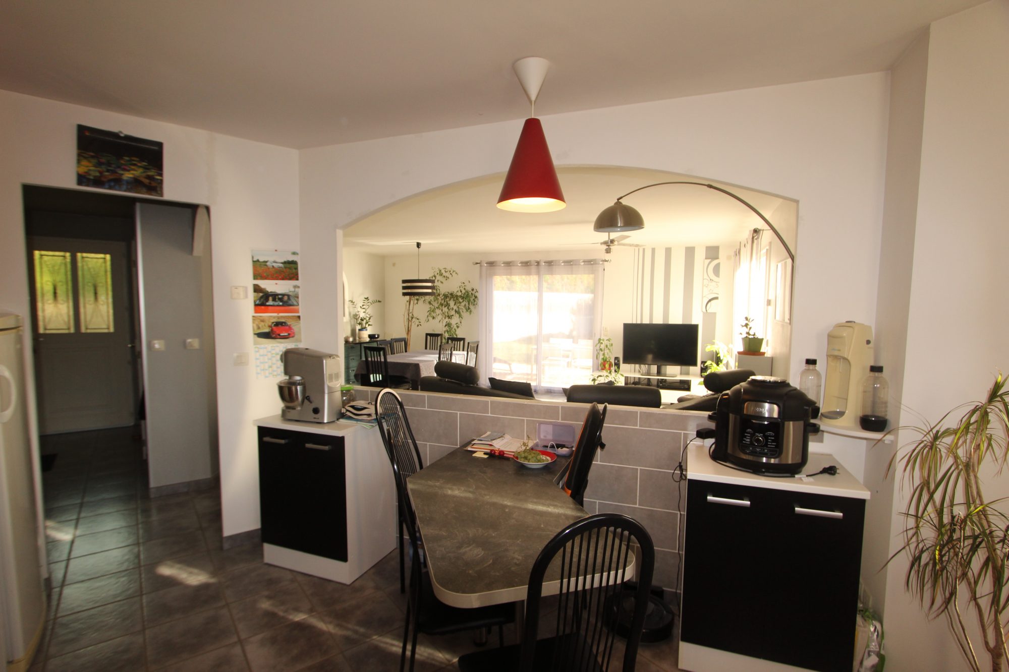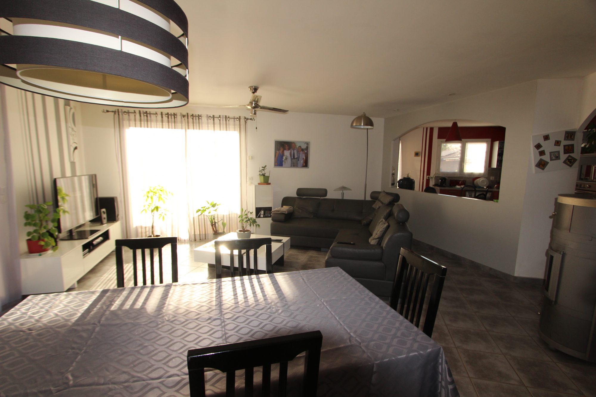 A vendre, à 15 mn de BOURG DE PEAGE, dans un agréable village avec toutes commodités, au calme, Maison de 2004 d'env 110 m² comprenant en rdc ; un salon avec poêle à bois ouvert sur cuisine aménagée et équipée. au 1/2 niveaux, 4 chambres, une salle de bains. Chauffage électrique au sol.