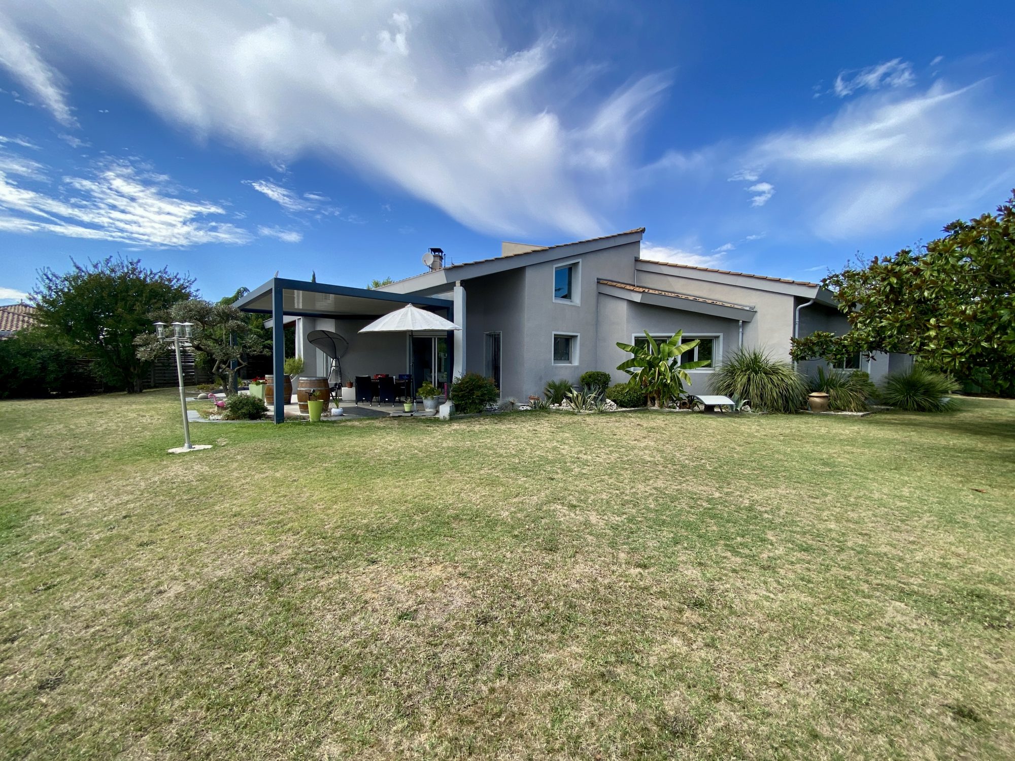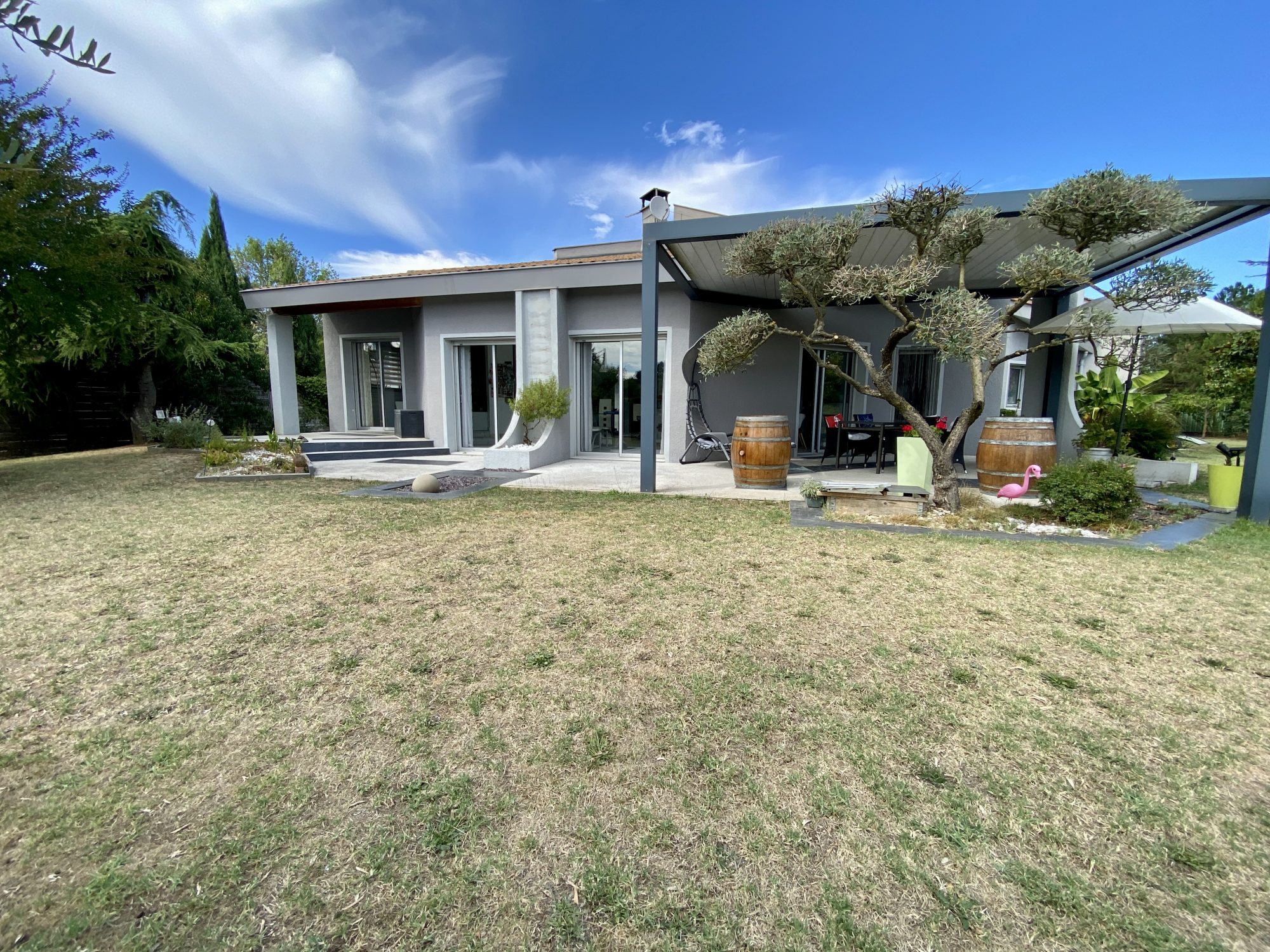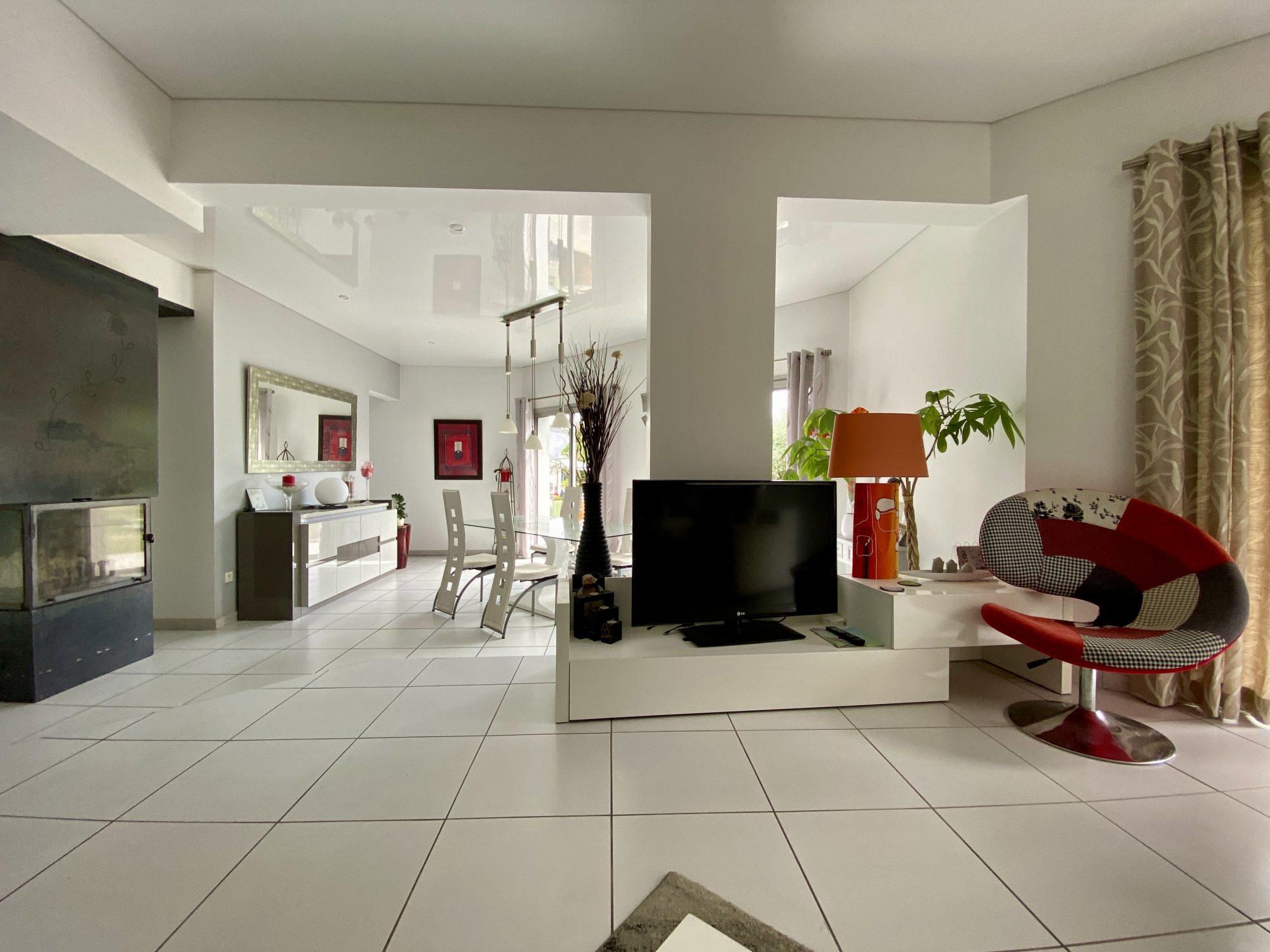 Située dans un environnement verdoyant, cette maison contemporaine offre de beaux volu...