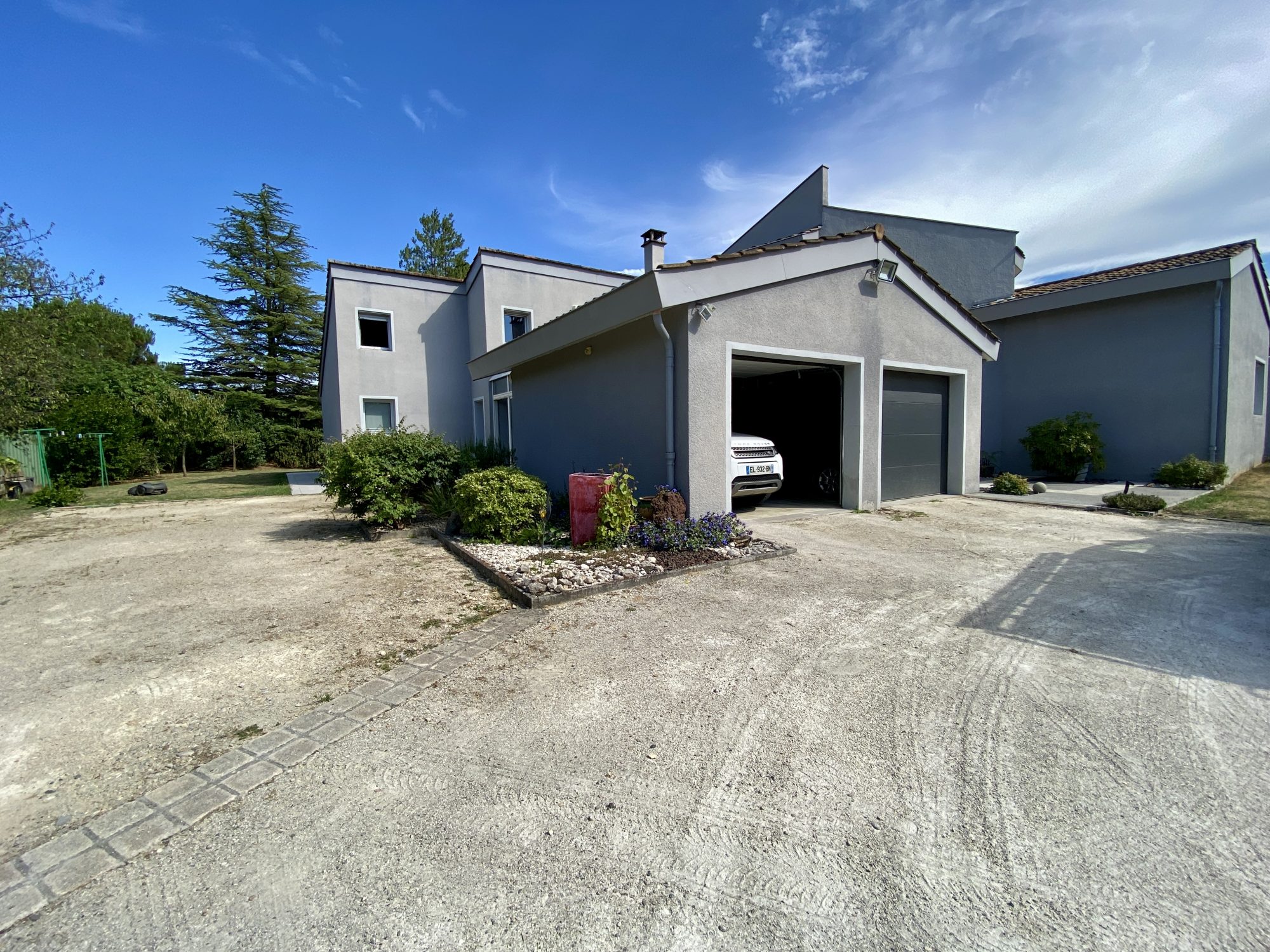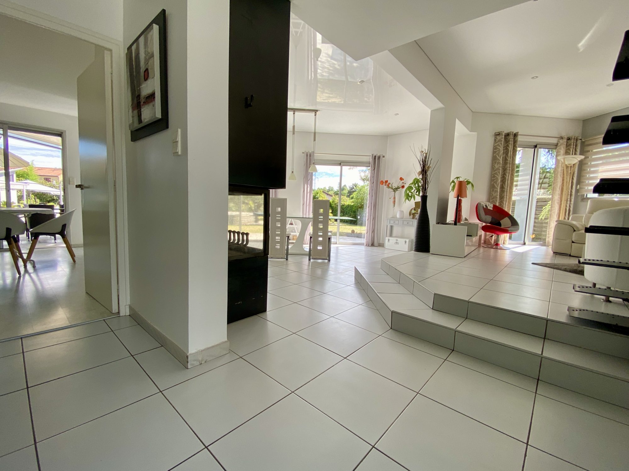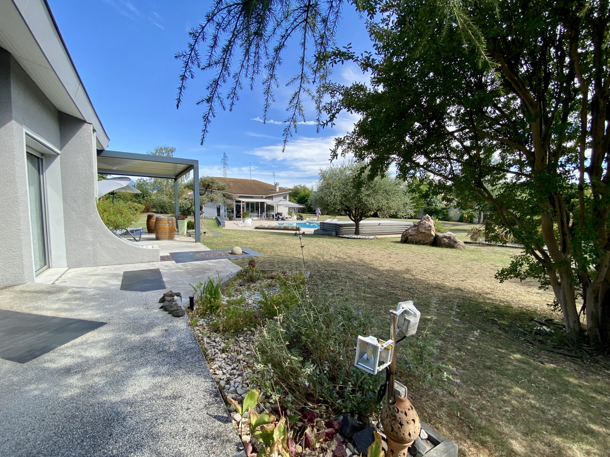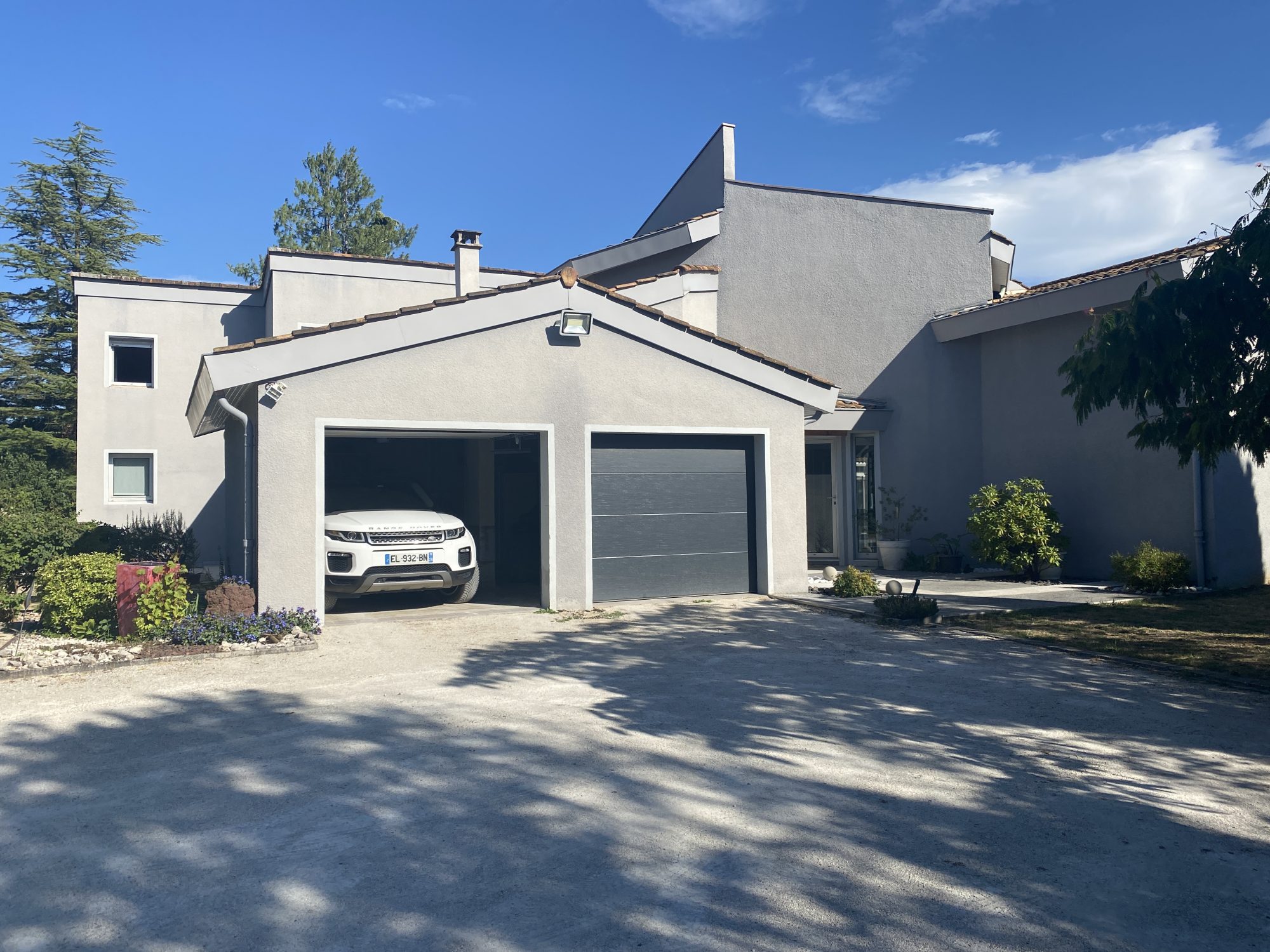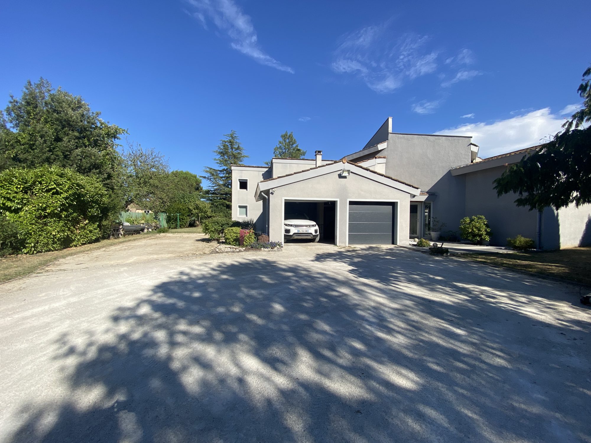 A VENDRE A BOURG DE PEAGE. Au fond d'une impasse, au calme. Sur une parcelle de 3 371 m², spacieuse maison d'architecte rénovée en 2018 (chaudière, isolation, embellissements) d'une surface au sol de 473 m² dont 370 m² habitables.