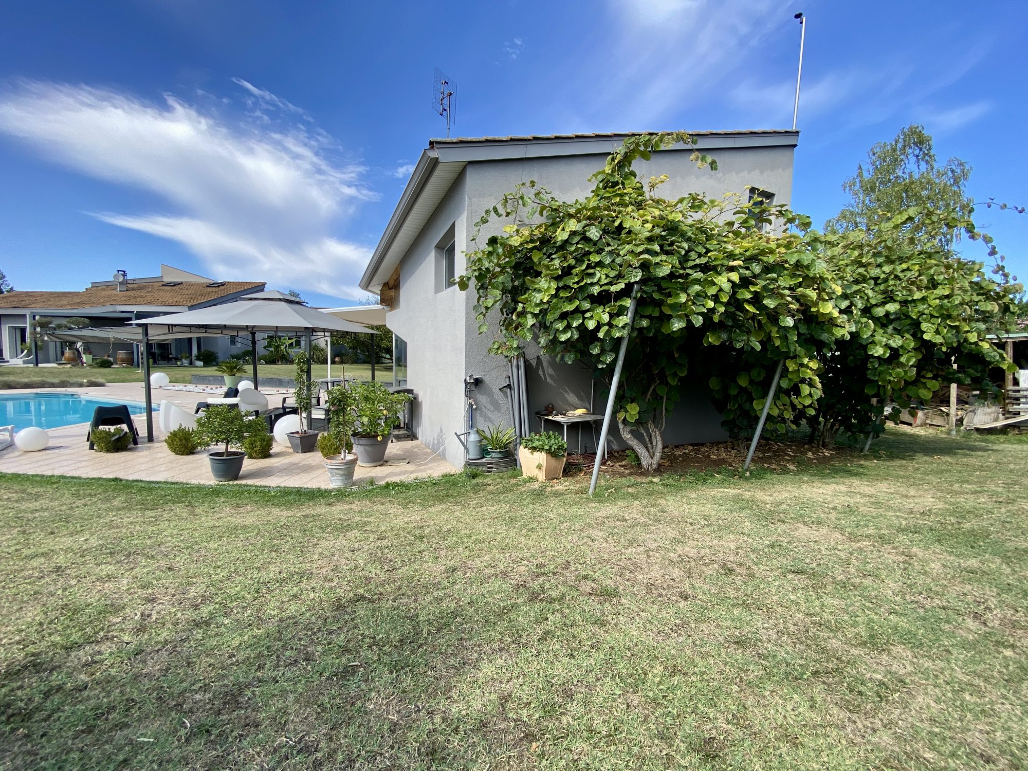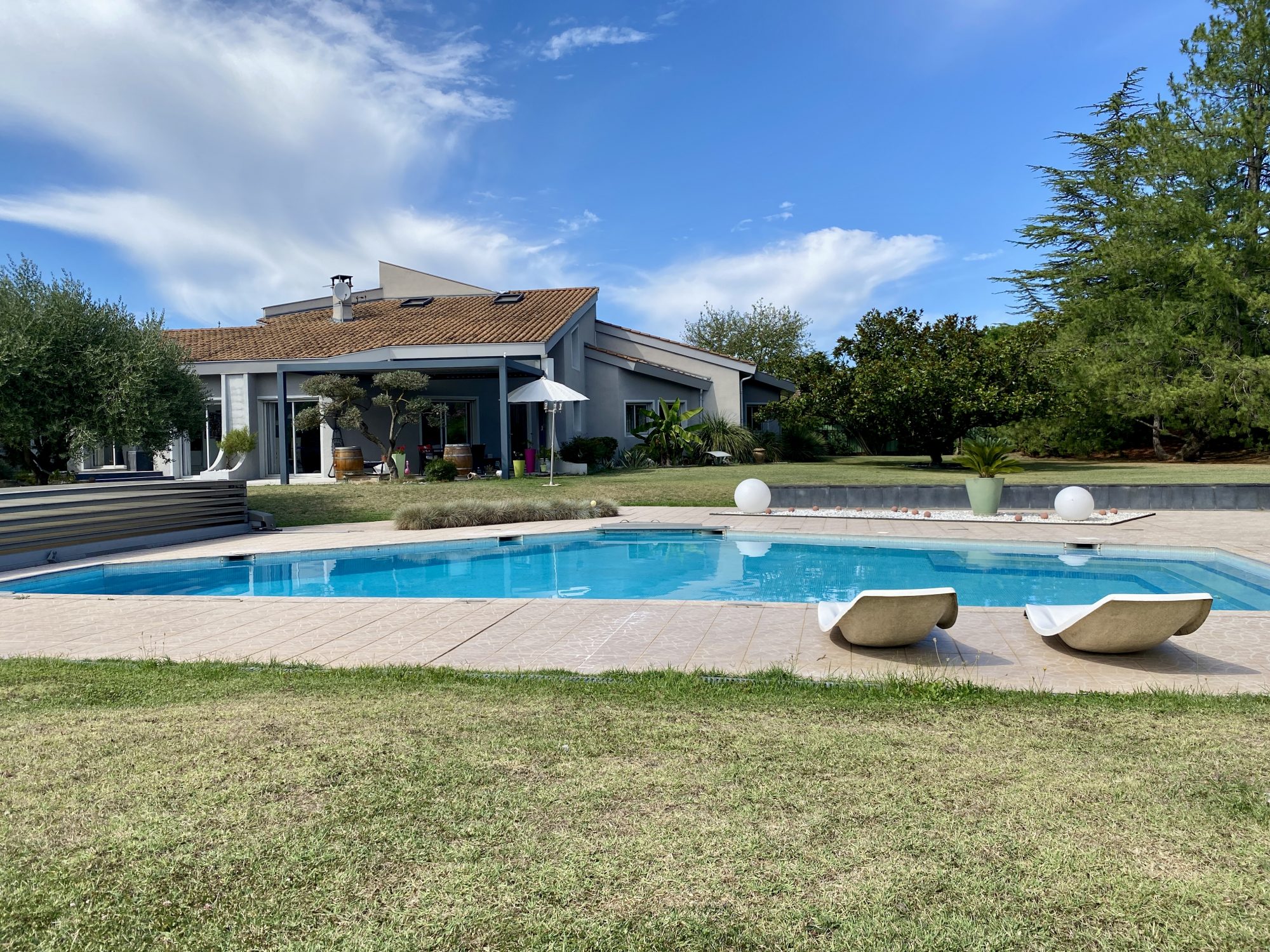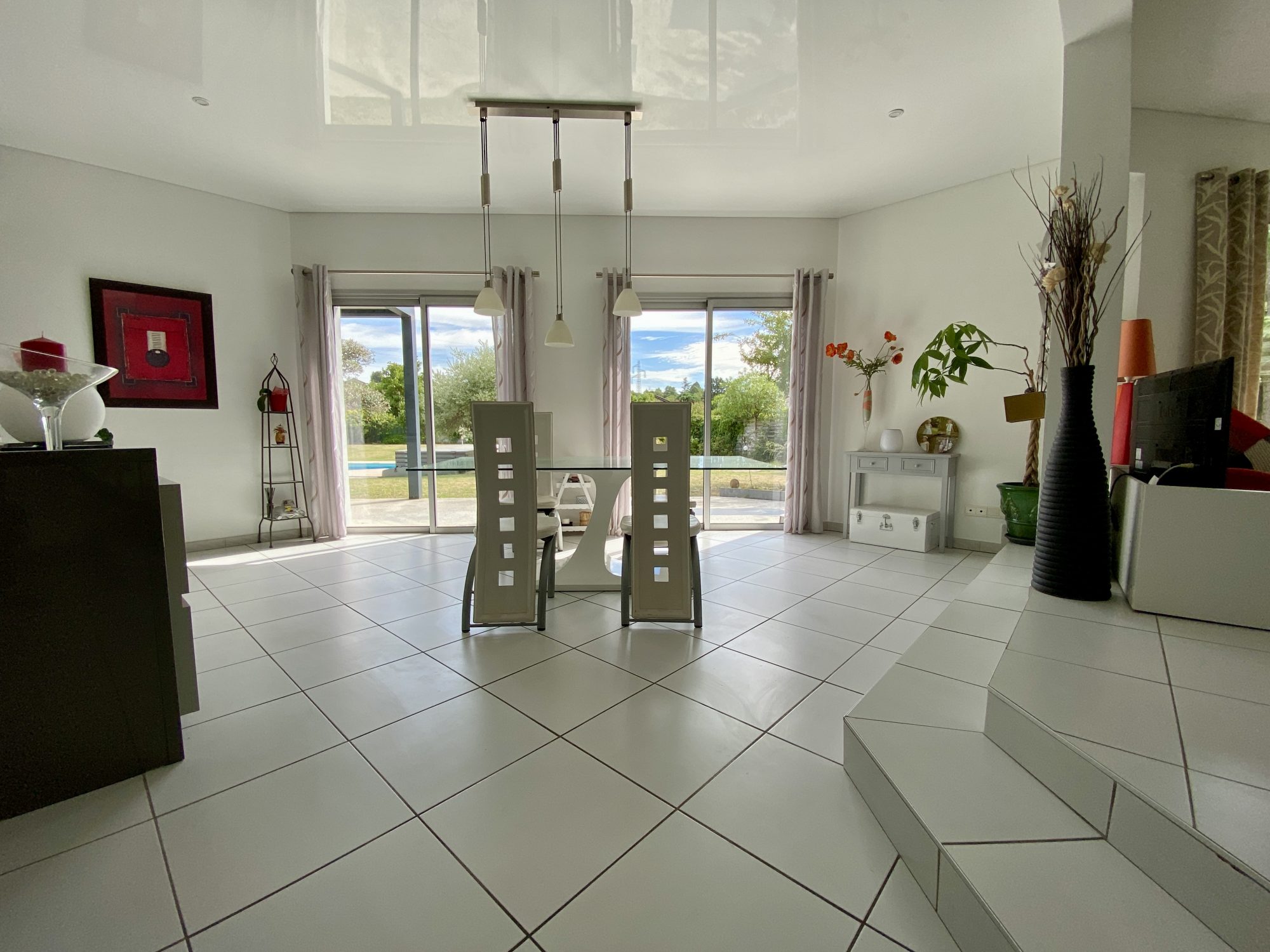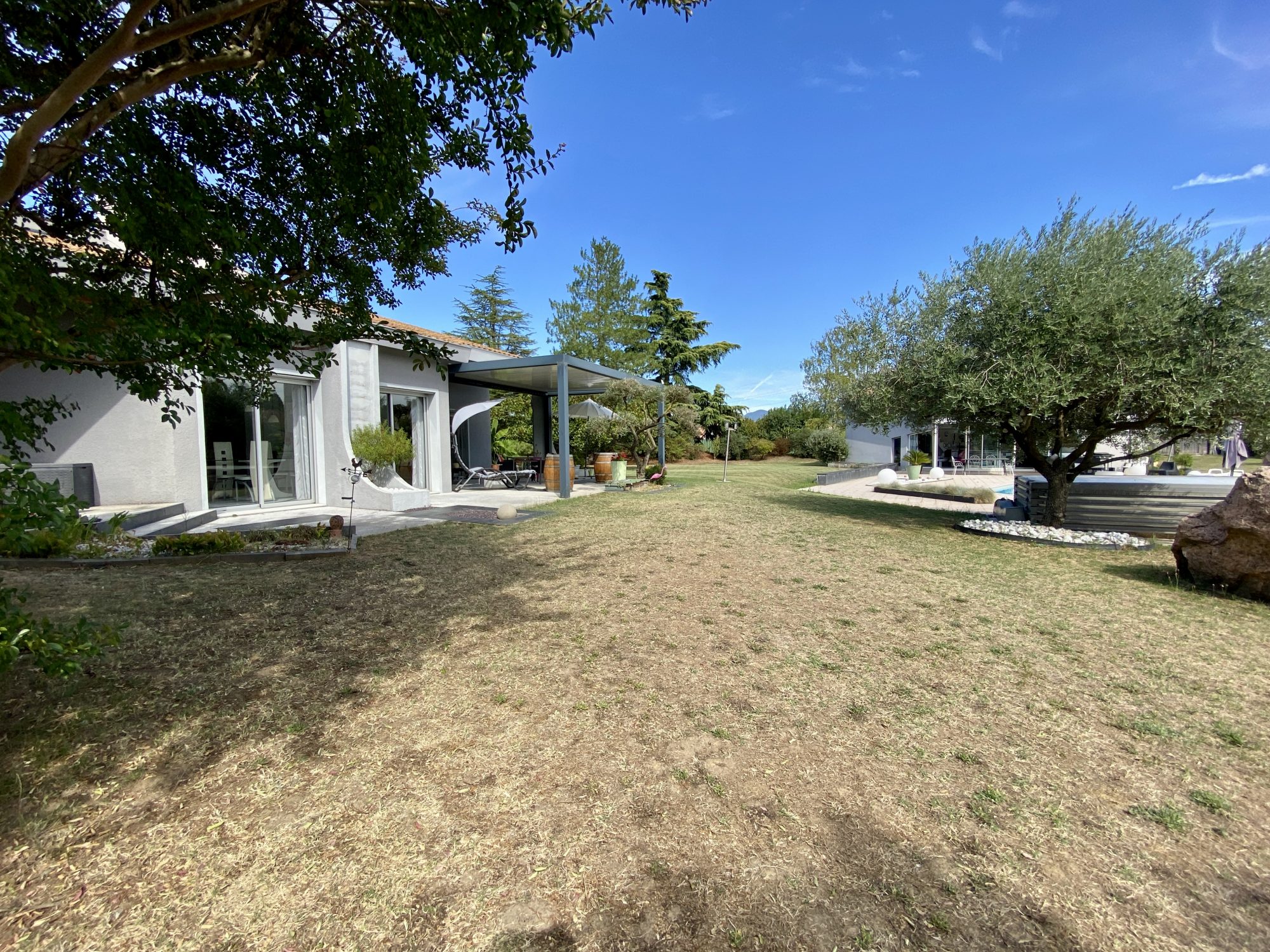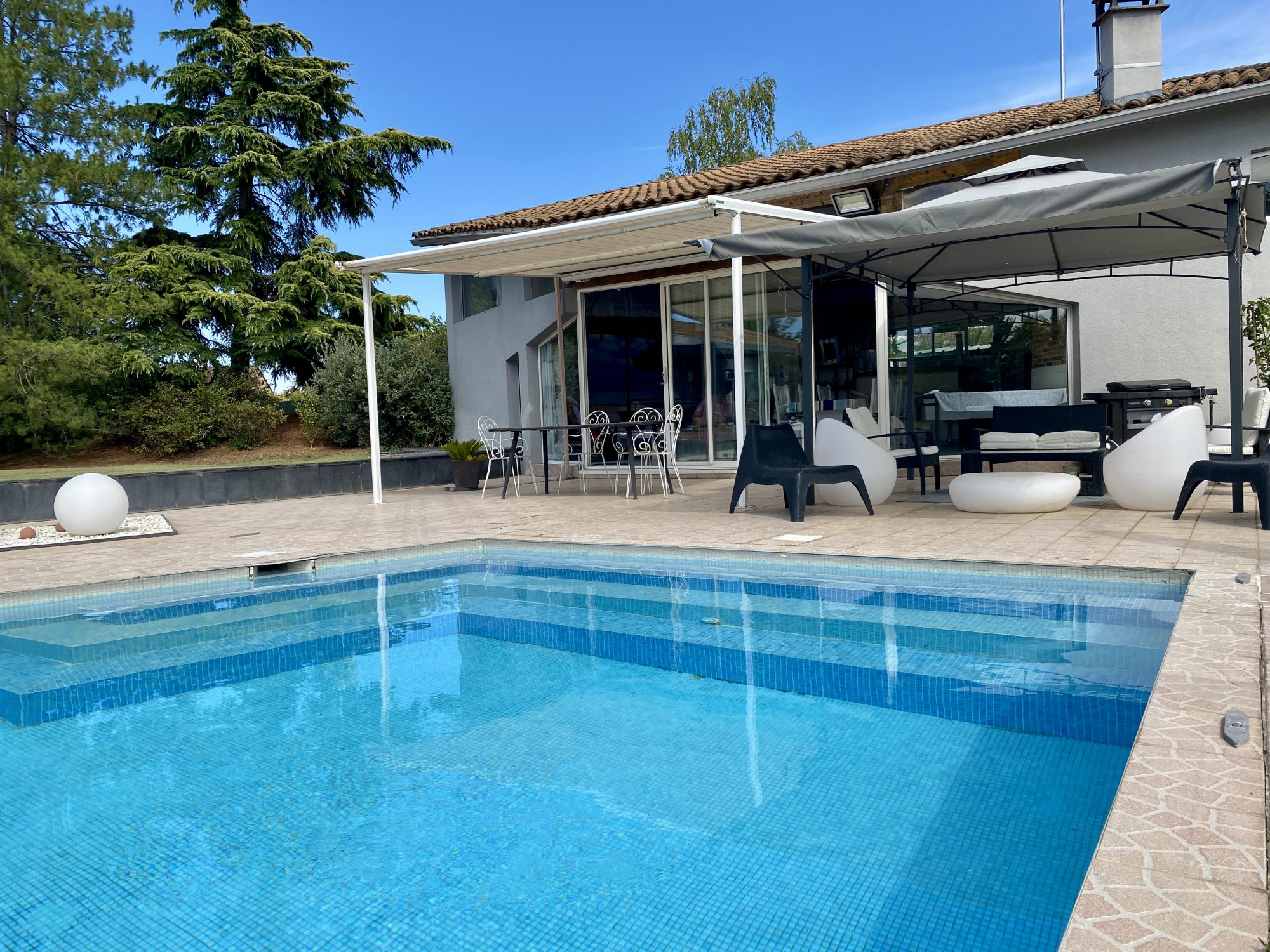 A VENDRE A BOURG DE PEAGE. Au fond d'une impasse, au calme. Sur une parcelle de 3 371 m², spacieuse maison d'architecte rénovée en 2018 (chaudière, isolation, embellissements) d'une surface au sol de 473 m² dont 370 m² habitables.