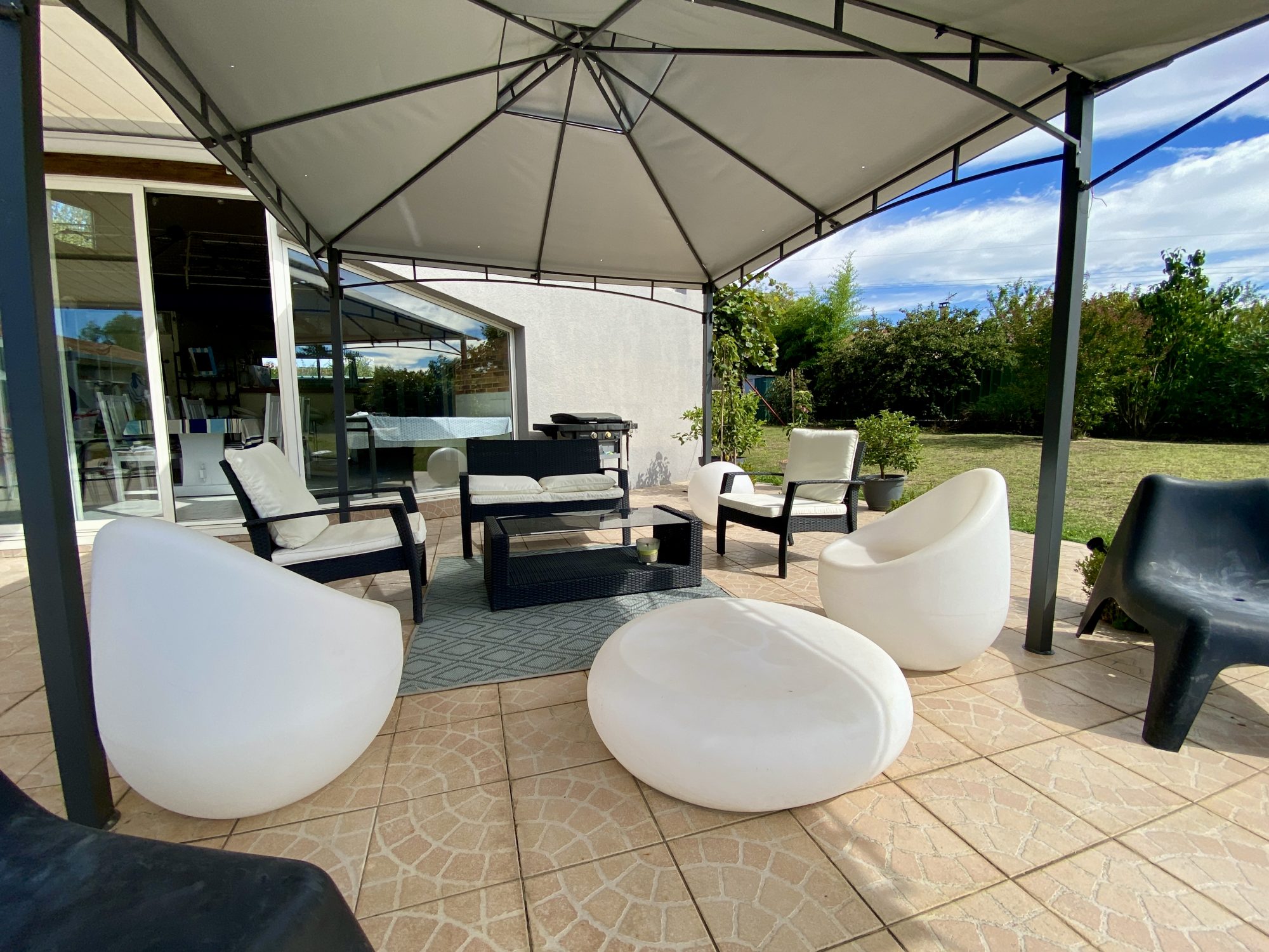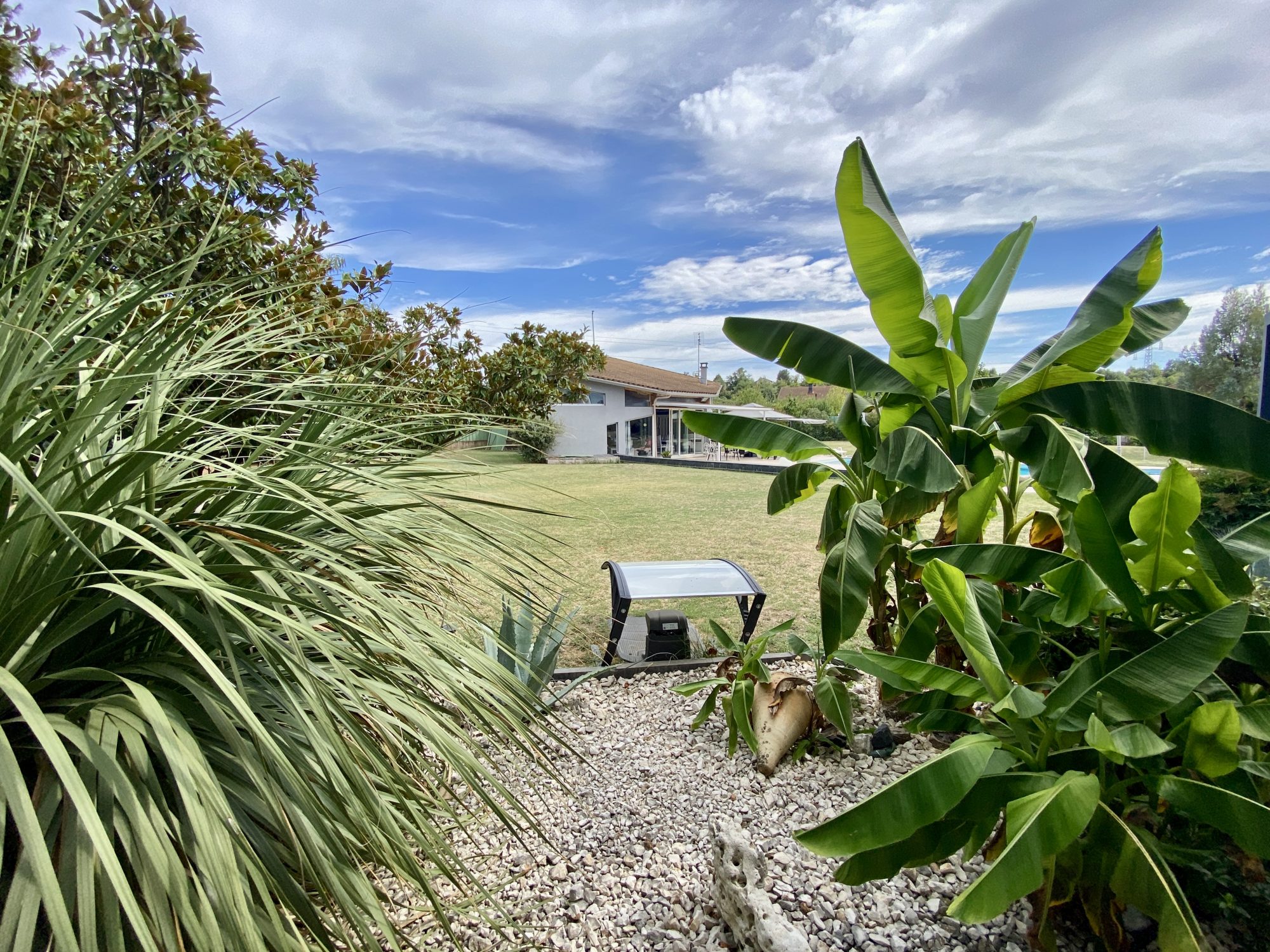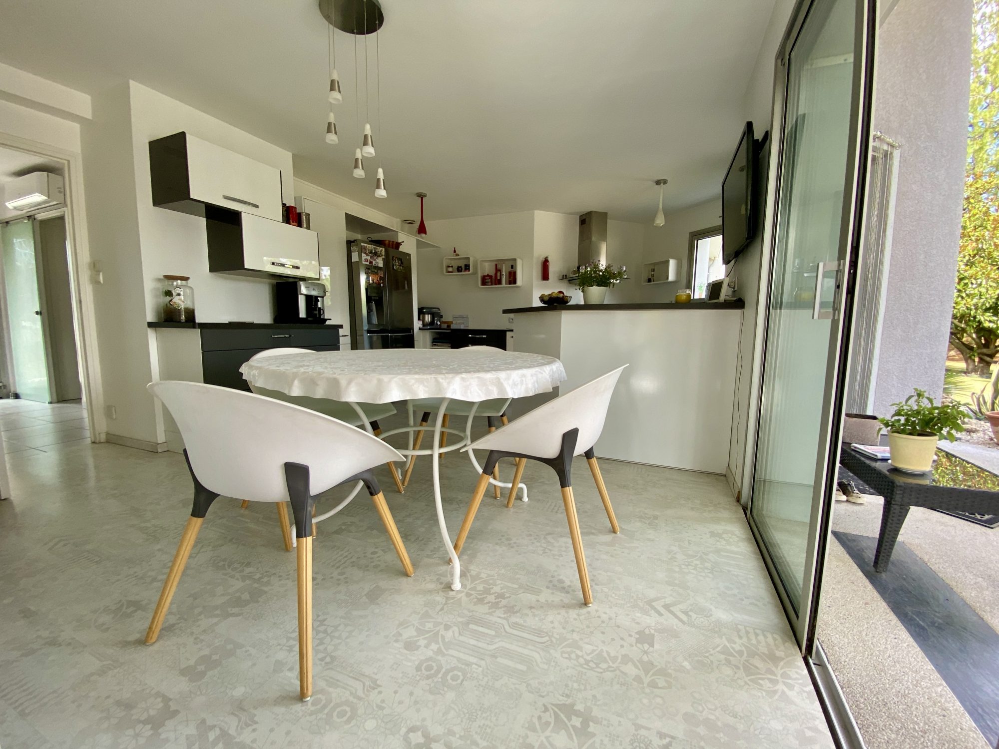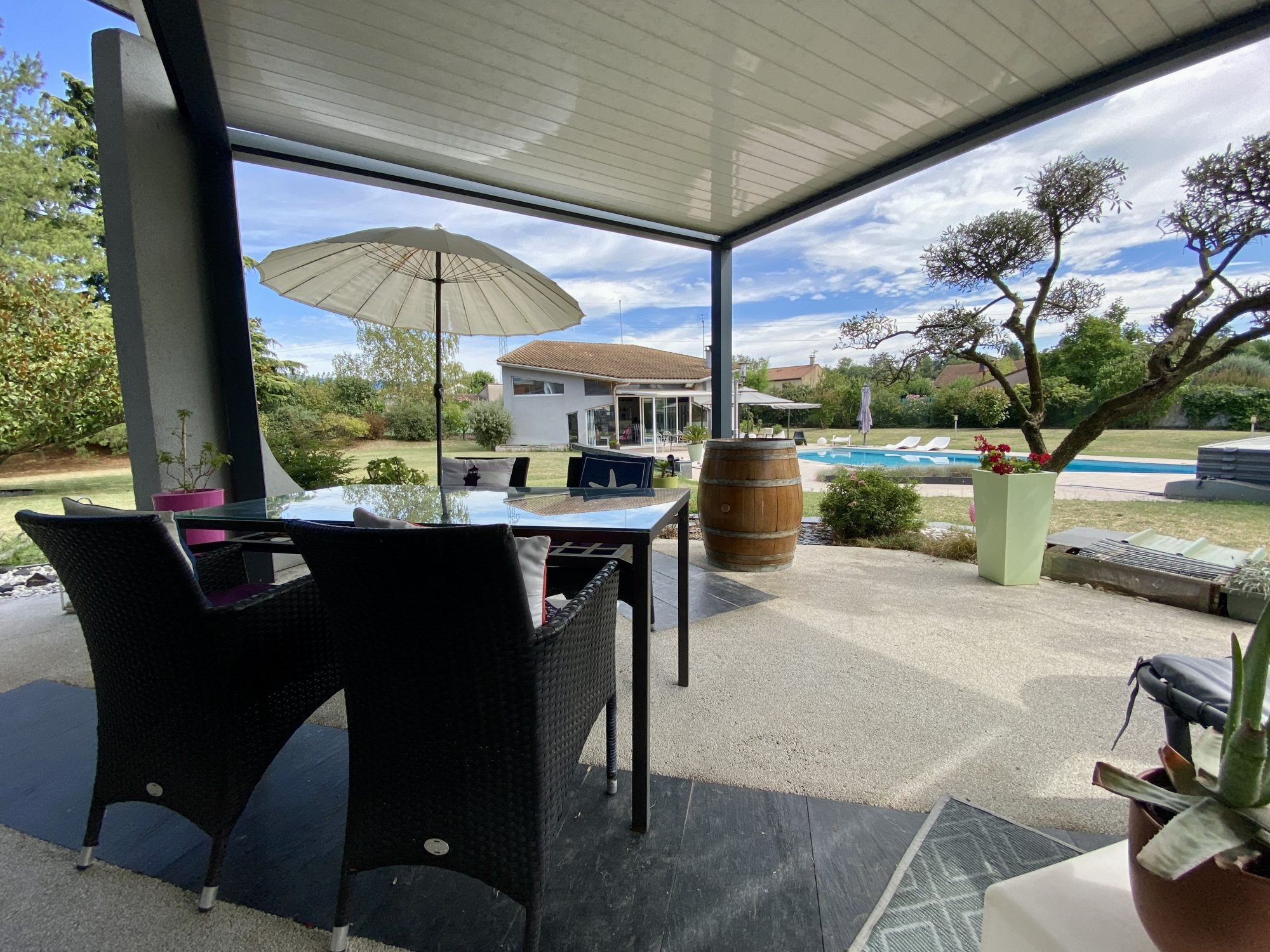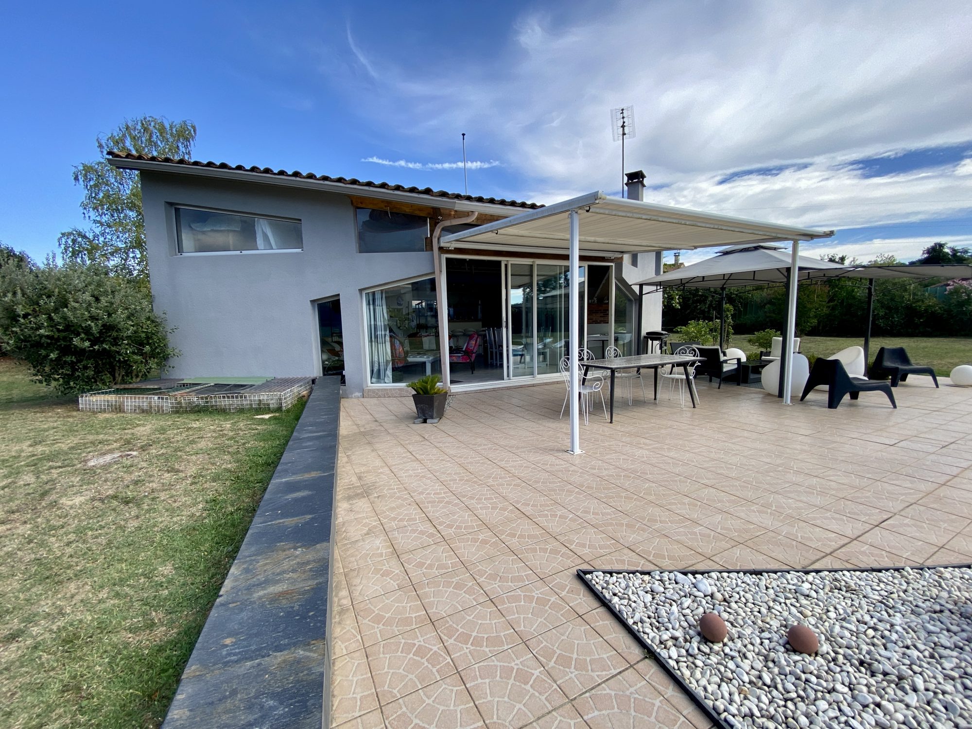 A VENDRE A BOURG DE PEAGE. Au fond d'une impasse, au calme. Sur une parcelle de 3 371 m², spacieuse maison d'architecte rénovée en 2018 (chaudière, isolation, embellissements) d'une surface au sol de 473 m² dont 370 m² habitables.