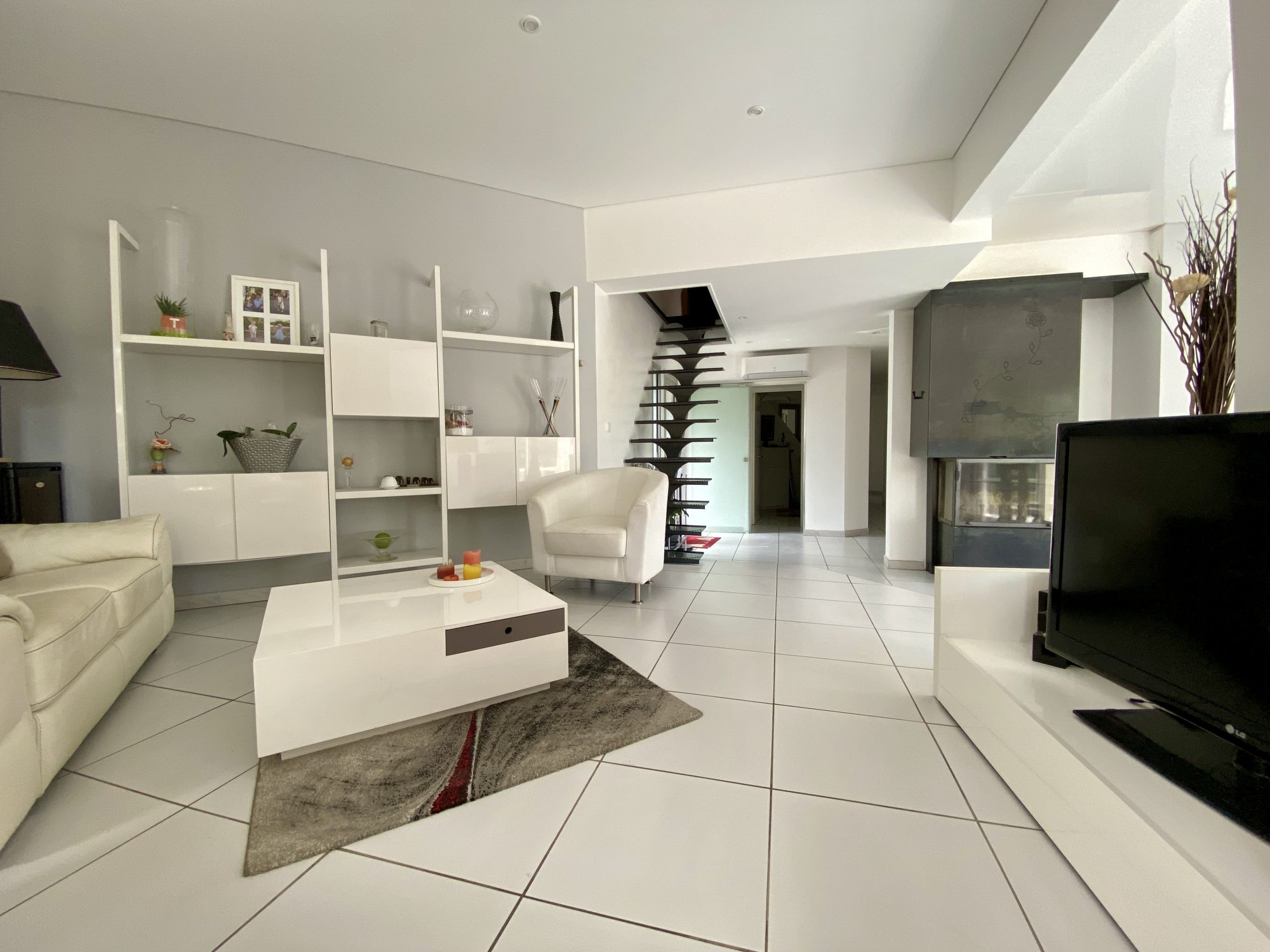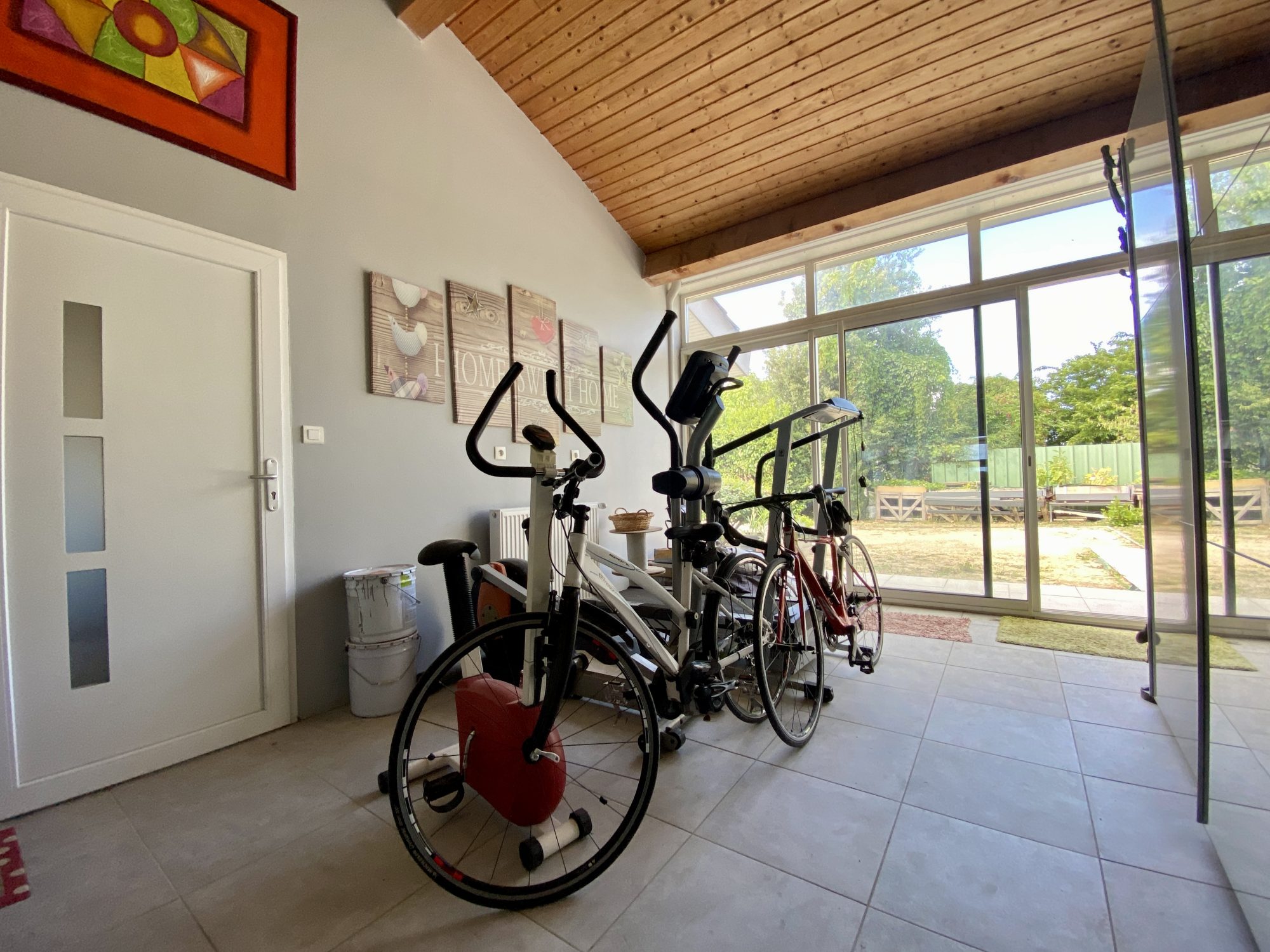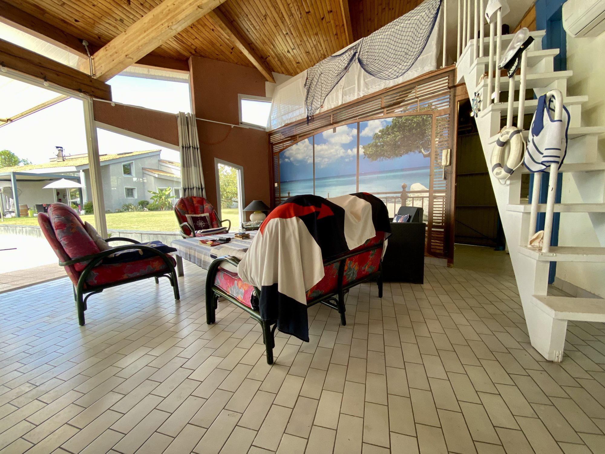 Ce bien d'exception se compose comme suit : au rez-de-chaussée : un hall d'entrée avec placards, un vestibule avec wc, un salon/séjour de 43 m², une cuisine équipée, un dégagement, une salle de sport donnant accès au double garage, une salle de bains avec douche et baignoire, trois chambres dont deux avec mezzanine, une seconde salle d'eau, une buanderie, un second wc.