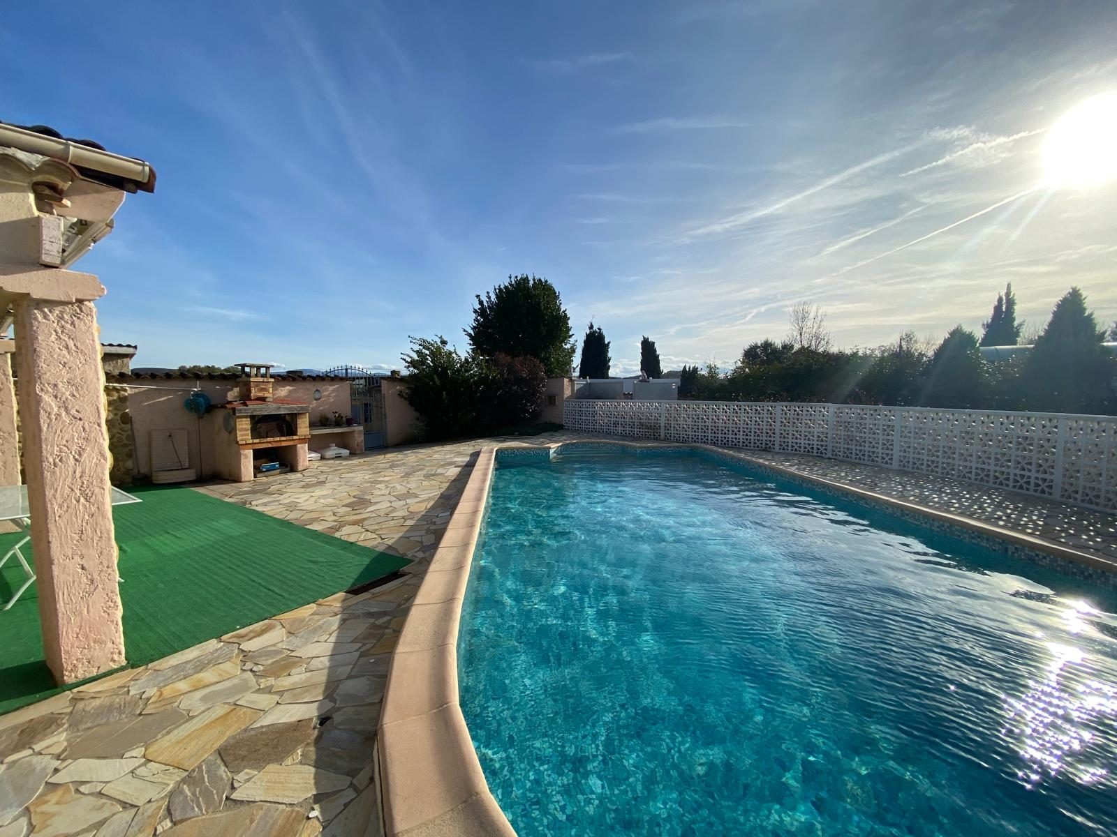 L'extérieur est tout aussi enchanteur avec un jardin luxuriant et une piscine carrelée, construite en 2013, qui vous invitera à des moments de détente et de loisirs. Un stationnement intérieur est également disponible pour votre confort.