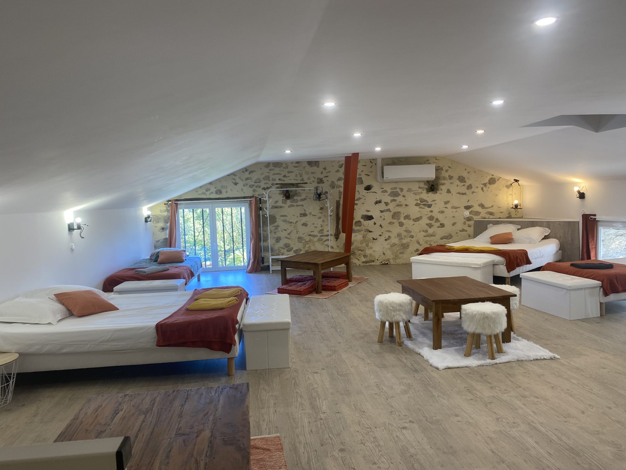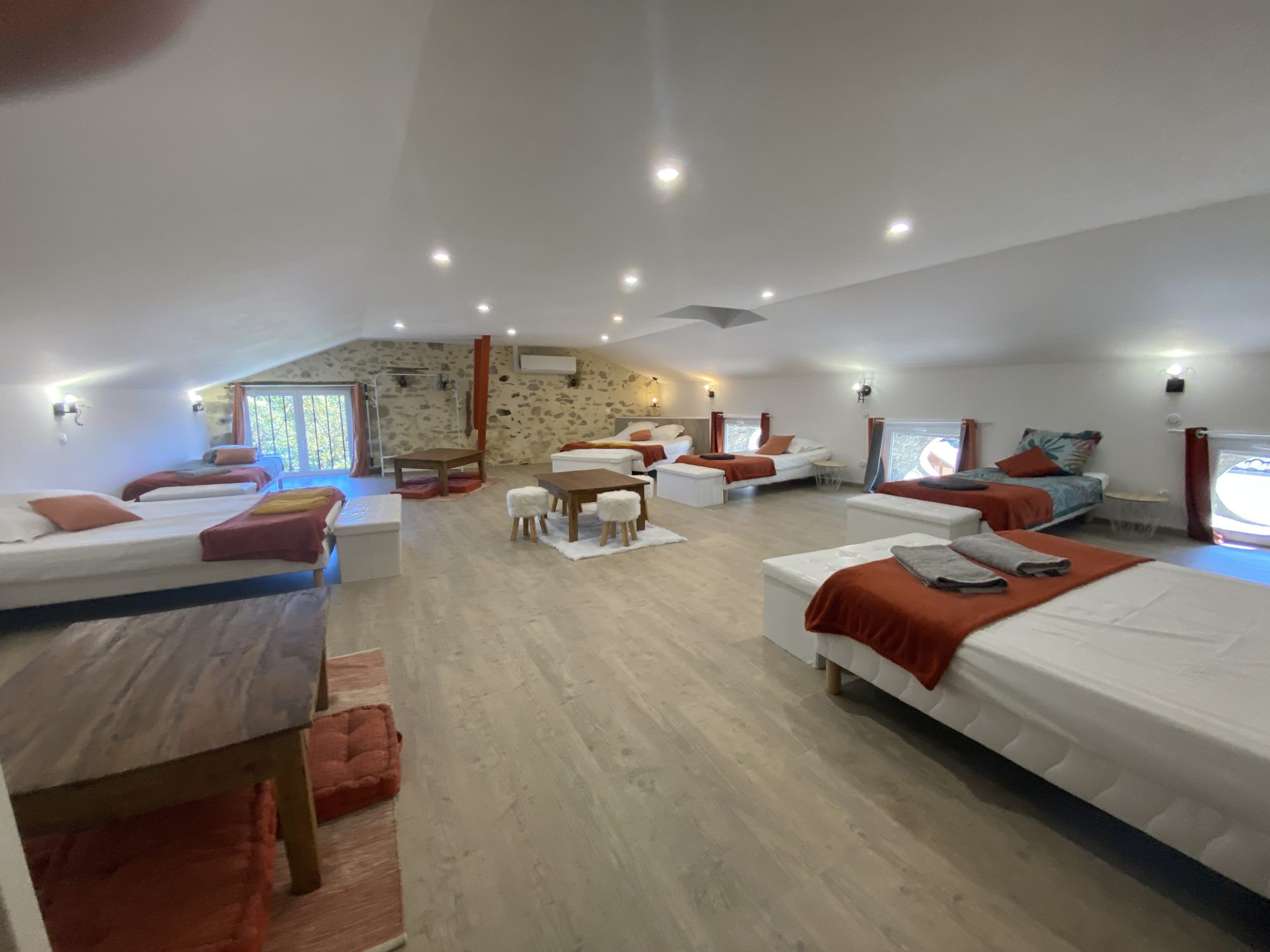 • Grand dortoir ~60 m² (pouvant être redistribué en plusieurs chambres indépendantes)