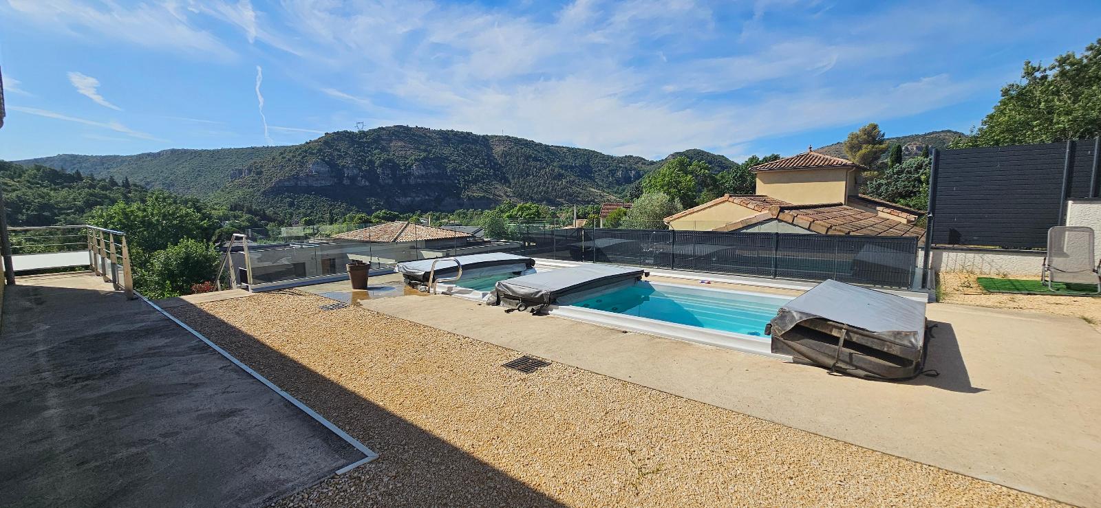 Pool house avec salle d'eau. SPA double de nage. Terrasse couverte. Terrain clos de 850 m².